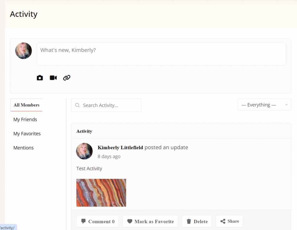 “ACTIVITY” is the meat of your membership! This is where you will see your friendships, your groups, your mentions and favorites! THIS is where you can make a post and have your own piece of Wag4Me! The more friends you make, the wilder your activity can get!